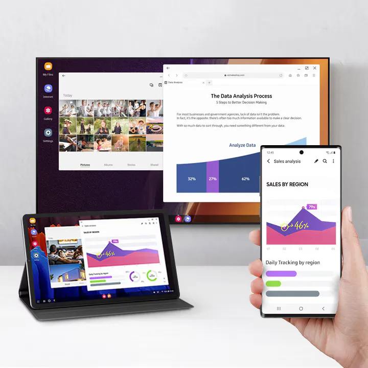Galaxy Z Fold6 5G juga mendukung fitur Samsung DeX, memungkinkan tampilan antarmuka menyerupai PC saat terhubung dengan monitor eksternal, yang sangat memudahkan produktivitas pengguna.